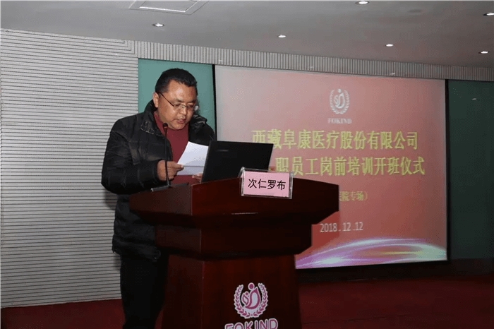 西藏玉拓醫(yī)療健康養(yǎng)老產(chǎn)業(yè)有限責(zé)任公司總經(jīng)理次仁羅布為本次培訓(xùn)活動(dòng)致辭:"西藏阜康康復(fù)醫(yī)院是一家康復(fù)專科醫(yī)院,也是‘玉拓醫(yī)療’和‘阜康醫(yī)療’聯(lián)合創(chuàng)辦的醫(yī)院,我相信我們兩家公司一定會(huì)精誠(chéng)合作,將康復(fù)醫(yī)院發(fā)展成為技術(shù)一流、服務(wù)一流的現(xiàn)代化醫(yī)院!”