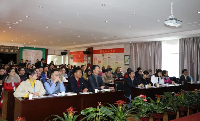 正式開講前,文進(jìn)副所長(zhǎng)代表四川大學(xué)華西醫(yī)院醫(yī)院管理研究所向阜康醫(yī)療贈(zèng)送了醫(yī)院管理專業(yè)書籍,西藏阜康醫(yī)療股份有限公司黨委書記、董事長(zhǎng)王斌接受了饋贈(zèng)。王斌隨后向與會(huì)老師、同學(xué)介紹了阜康醫(yī)療的創(chuàng)業(yè)歷程。從2005年開始,經(jīng)過(guò)全體員工13年的不懈奮斗,阜康由當(dāng)初只有70張床位的小醫(yī)院發(fā)展成為530張床位,工作人員1057人,集醫(yī)療、教學(xué)、科研、預(yù)防、保健、康復(fù)、急救和社區(qū)衛(wèi)生服務(wù)于一體的西藏民營(yíng)醫(yī)療機(jī)構(gòu),在醫(yī)學(xué)領(lǐng)域開創(chuàng)諸多全區(qū)之先河,為西藏的醫(yī)療事業(yè)發(fā)展、保障各族群眾的身體健康作出了巨大貢獻(xiàn)。