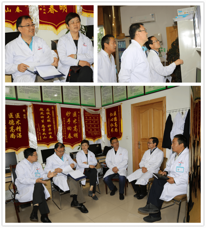 回到消化內(nèi)科醫(yī)生值班室,周平紅教授和阜康醫(yī)院醫(yī)護(hù)人員一起進(jìn)行會(huì)診。周平紅教授認(rèn)真聽(tīng)取了阜康醫(yī)院消化內(nèi)科醫(yī)生的匯報(bào),仔細(xì)查閱患者的各種檢查資料,對(duì)幾起復(fù)雜病例指明了診治方向。