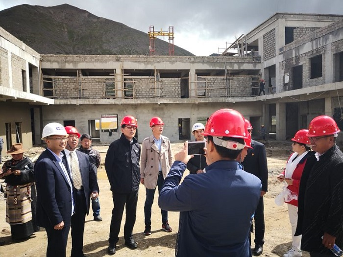 2018年了8月9日,受阜康邀請(qǐng),西藏自治區(qū)政協(xié)副主席、區(qū)工商聯(lián)主席、區(qū)總商會(huì)會(huì)長(zhǎng)阿沛·晉源,拉薩大昭寺管家洛桑,西藏自治區(qū)社會(huì)科學(xué)院原處長(zhǎng)次旺仁青,西藏阜康醫(yī)療股份有限公司黨委書記、董事長(zhǎng)王斌,西藏阜康醫(yī)療股份有限公司黨委副書記、副總經(jīng)理陳彬,西藏阜康醫(yī)院名譽(yù)院長(zhǎng)嘎布,阜康生殖醫(yī)學(xué)中心實(shí)驗(yàn)室主任劉鋒,阜康體檢中心主檢師瓊瑪,阿沛·晉源主席秘書旦增一行早上8點(diǎn)從拉薩出發(fā),一路顛簸馳騁于下午2點(diǎn)50分許抵達(dá)那曲地區(qū)嘉黎縣夏瑪鄉(xiāng)。聽說晉源主席要來視察衛(wèi)生院的建設(shè)工作,嘉黎縣縣長(zhǎng)吾金不顧受傷的左腿帶領(lǐng)當(dāng)?shù)馗刹咳罕娫缭绲群蛟谙默斷l(xiāng)衛(wèi)生院建設(shè)現(xiàn)場(chǎng)。