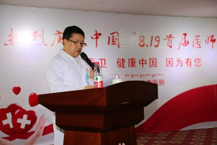 孫貴林代表院領(lǐng)導(dǎo)班子向辛勤工作在臨床一線的醫(yī)師們致以崇高的敬意和節(jié)日的祝賀。他說中國是世界文明古國,醫(yī)師職業(yè)源遠流長,長期以來與人民群眾的生產(chǎn)生活息息相關(guān)。目前我國用占世界2%的醫(yī)療資源服務(wù)著世界上22%的人口,并能取得這樣的成績,是與全國數(shù)百萬醫(yī)師的辛勤工作密不可分的。他勉勵全院廣大醫(yī)務(wù)人員要倍加珍惜全區(qū)各族群眾的信任,加強醫(yī)患溝通,不斷提高技藝,在推進全院醫(yī)療事業(yè)的發(fā)展中做出積極的貢獻。