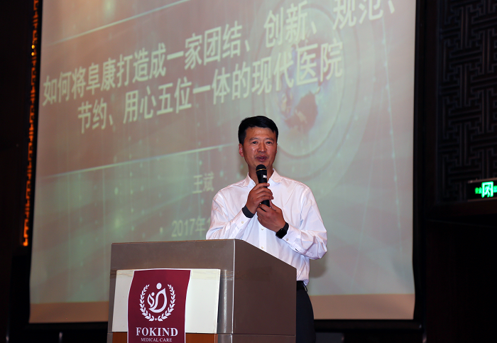 "現(xiàn)在整個(gè)中國都已融入世界發(fā)展的快車道,中國價(jià)值已被越來越多的國家認(rèn)可。習(xí)近平主席提出的四個(gè)全面、五位一體、人類命運(yùn)共同體也得到越來越多人的擁戴。而我們個(gè)別員工還停留在有誰罩著我,跟著誰混保平安的落后思想!現(xiàn)在我們唯有團(tuán)結(jié)一致、勇于創(chuàng)新、規(guī)范管理、厲行節(jié)約及用心服務(wù)的思想才能在激烈的醫(yī)藥行業(yè)闖出阜康的一片天地?,F(xiàn)在企業(yè)準(zhǔn)備上市,大家必須嚴(yán)格按照上市企業(yè)的要求做到自律,規(guī)范服務(wù)接受社會(huì)大眾的監(jiān)督!因?yàn)榇蠹夷桥虏缓玫囊谎砸恍卸紩?huì)影響阜康的上市工作!從阜康過去發(fā)現(xiàn)的問題來看,這些問題的出現(xiàn),主要是我王斌的問題,我以前只要求大家要做什么沒告訴大家怎么做才符合阜康的核心價(jià)值觀,缺少必要的崗前培訓(xùn)。以后要加強(qiáng)德育和治理能力的培訓(xùn),只有這樣才能形成院領(lǐng)導(dǎo)服務(wù)科主任,科主任服務(wù)科員,行政后勤服務(wù)醫(yī)技護(hù)臨床一線,一線員工服務(wù)患者的思想,主動(dòng)提高服務(wù)意識(shí)和水平徹底告別生、硬、冷的服務(wù)態(tài)度!讓阜康再次成為西藏醫(yī)藥行業(yè)的標(biāo)桿?!蓖醣笳f。