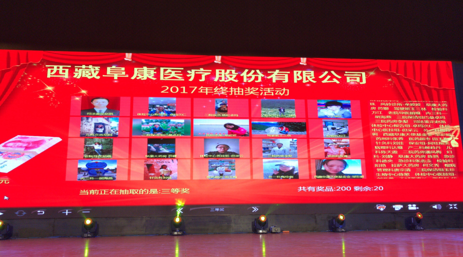 2018年1月10日,西藏阜康醫(yī)療股份有限公司新年團(tuán)拜會(huì)在拉薩洲際酒店舉行,下午四點(diǎn)來自西藏阜康醫(yī)院、婦產(chǎn)兒童分院、心腦血管分院、健康體檢中心、阜康大藥房、超市的員工陸續(xù)來到會(huì)場。下午五點(diǎn),主持人劉連福院長宣布會(huì)議正式開始,場內(nèi)音樂響起,董事長王斌帶領(lǐng)醫(yī)院領(lǐng)導(dǎo)和特邀嘉賓入場,會(huì)場立刻響起雷鳴般的掌聲和歡呼聲。