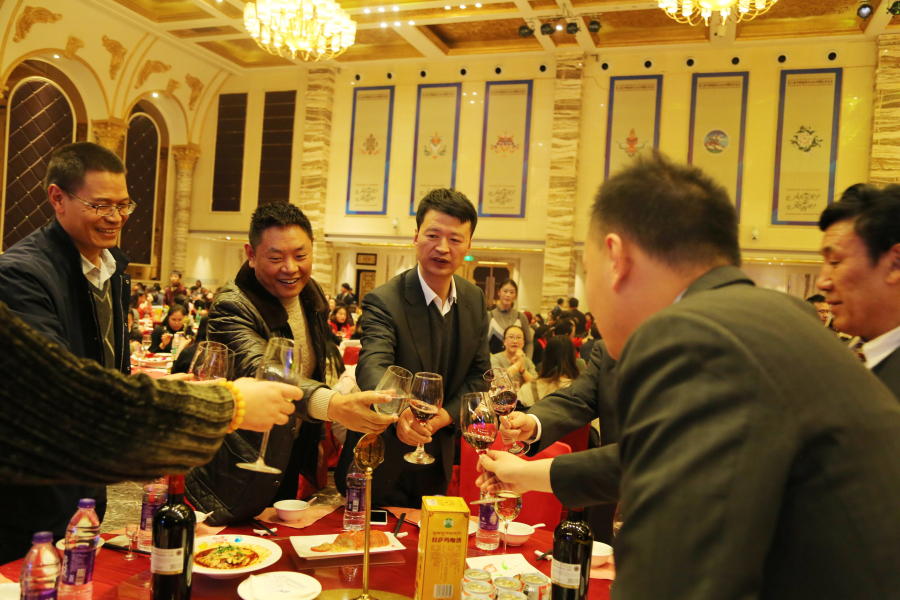 晚宴尾聲,董事長王斌邀請所有院級領(lǐng)導(dǎo)上臺(tái)共同舉杯說:"希望大家在新的一年繼續(xù)沿著創(chuàng)新的道路團(tuán)結(jié)一致、規(guī)范管理、用心服務(wù),開源節(jié)流地做好自己本職和醫(yī)院的工作。我相信,在各位阜康同仁的共同努力下,2018年我們一定會(huì)保質(zhì)、保量完成工作計(jì)劃。為保障西藏自治區(qū)廣大人民群眾的身體健康做出新的更大的貢獻(xiàn),促進(jìn)醫(yī)院健康、持續(xù)、穩(wěn)步地向前發(fā)展,更上一層樓,再鑄新輝煌! ”