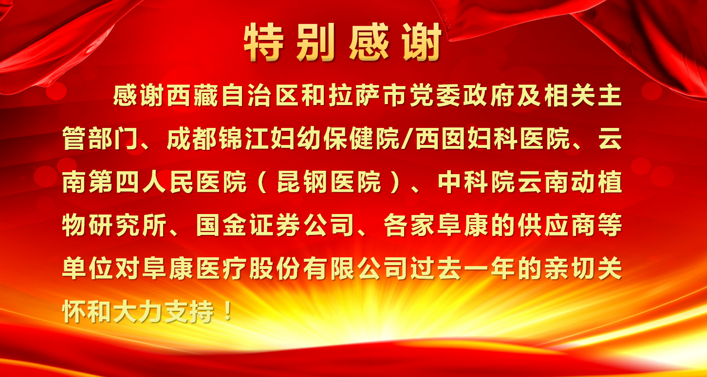 我之存在,因?yàn)橛心悖话倌旮房?,感恩有您。感恩是一種態(tài)度、一種美德、一種情懷!不忘初心、砥礪前行,感謝你們的一路陪伴,阜康的輝煌離不開每一位阜康人的奉獻(xiàn),雄關(guān)漫道真如鐵,而今邁步重頭越!2018年將是阜康騰飛的一年,在各級領(lǐng)導(dǎo)關(guān)心下,各位同仁支持下,阜康一年更比一年好!以十九大精神為指導(dǎo),努力打造"團(tuán)結(jié)、創(chuàng)新、規(guī)范、節(jié)約、用心”五位一體的現(xiàn)代化醫(yī)院!為西藏人民群眾解決看病遠(yuǎn)、看病難、看病貴的問題,全心全意為西藏人民健康服務(wù)!