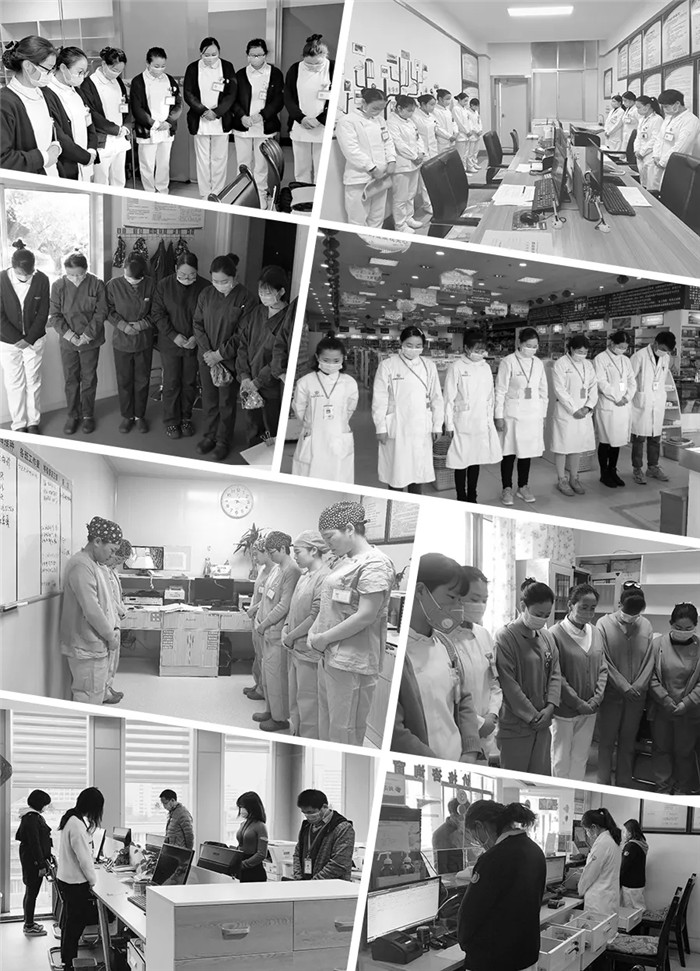 上午10點(diǎn),隨著防空警報(bào)拉響,阜康醫(yī)療全體黨員和醫(yī)務(wù)工作者、行后人員分別在阜康醫(yī)院各院區(qū)、各科室、各藥房肅穆站立、低頭默哀。在這次疫情的特殊期間,有些人倒下了,但更多的人勇敢地扛起責(zé)任,在黨中央的堅(jiān)強(qiáng)領(lǐng)導(dǎo)下和疫情頑強(qiáng)斗爭(zhēng),如今我們已經(jīng)基本控制這場(chǎng)斗爭(zhēng)的局面,正在向全面勝利努力奮進(jìn)。