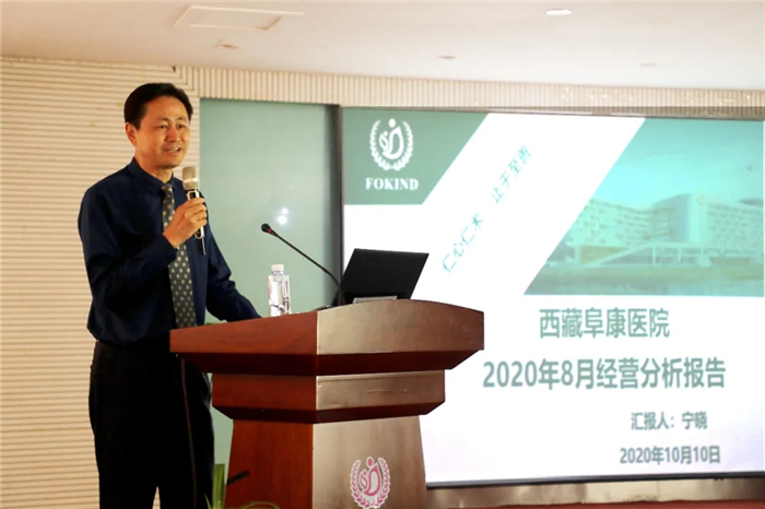 在醫(yī)院運(yùn)營(yíng)方面,寧曉總院長(zhǎng)匯報(bào)了2020年8月經(jīng)營(yíng)分析報(bào)告,他以詳細(xì)的圖文數(shù)據(jù),分析了醫(yī)院的經(jīng)營(yíng)情況,并提出了下一步工作重點(diǎn)。
