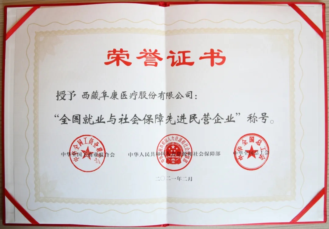 "就業(yè)是最大的民生,收入是民生之源”,西藏阜康醫(yī)療股份有限公司將以本次榮獲"全國就業(yè)與社會保障先進民營企業(yè)”為新的起點,繼續(xù)加大就業(yè)與社會保障工作力度,在企業(yè)發(fā)展的同時進一步增加吸納就業(yè)人數(shù),引進高級專業(yè)技術(shù)人才,加大現(xiàn)有人員技能培訓力度,努力提高職工收入水平,為全面推進社會主義現(xiàn)代化建設(shè)和鄉(xiāng)村振興事業(yè)做出應有的貢獻。