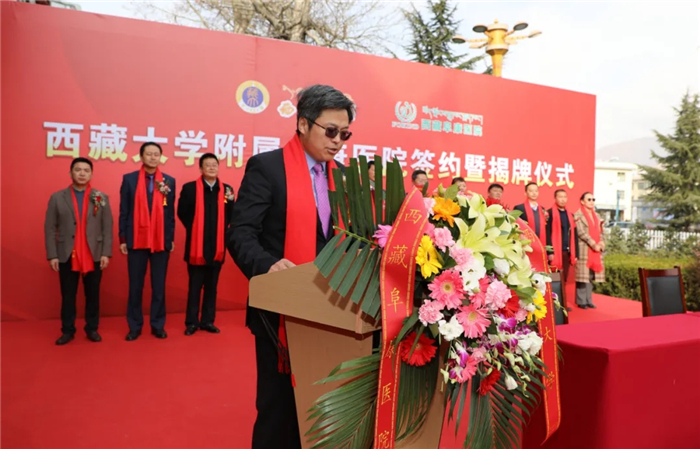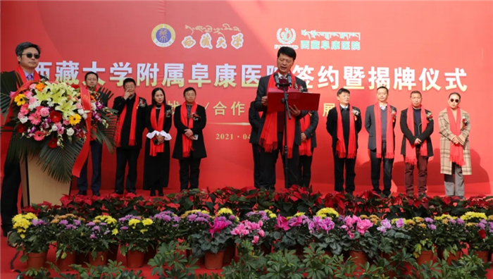王斌董事長在致辭中說,在黨委、政府的關(guān)懷之下,在主管部門的指導之下,在全區(qū)人民和社會各界的支持之下,西藏阜康醫(yī)院經(jīng)過十六年的發(fā)展,已經(jīng)成為一家現(xiàn)代化綜合性三級民營醫(yī)院。此次西藏大學與西藏阜康醫(yī)院的"聯(lián)姻”,開啟了地方高校與民營醫(yī)院深度合作的先河,西藏阜康醫(yī)院成為西藏大學的附屬醫(yī)院,體現(xiàn)了西藏大學對阜康醫(yī)院的信任,同時也為阜康醫(yī)院的發(fā)展注入了"強心劑”,雙方的合作一定能實現(xiàn)優(yōu)勢互補、資源共享、互利雙贏,補齊短板的預期目的。