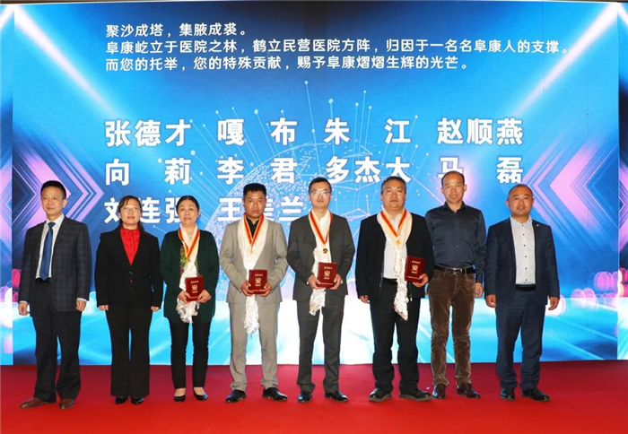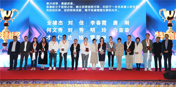 大會第三項,在公司成立22周年暨阜康醫(yī)院成立16周年之際,特頒發(fā)阜康功勛獎?wù)?枚(每枚黃金100克)、阜康特殊貢獻(xiàn)獎?wù)?1枚(每枚黃金50克)、阜康無私援助獎?wù)?1枚(每枚黃金50克),向阜康做出卓越貢獻(xiàn)、突出貢獻(xiàn)和無私援助的同仁和友人致敬和感恩。