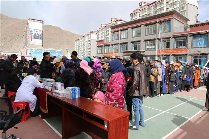 3月5日,西藏阜康醫(yī)療股份有限公司黨委志愿義診組來到拉薩市經(jīng)開區(qū)德吉康薩社區(qū),為一千多名農(nóng)牧區(qū)搬遷群眾進(jìn)行義診,并捐贈了價值一萬多元的藥品。