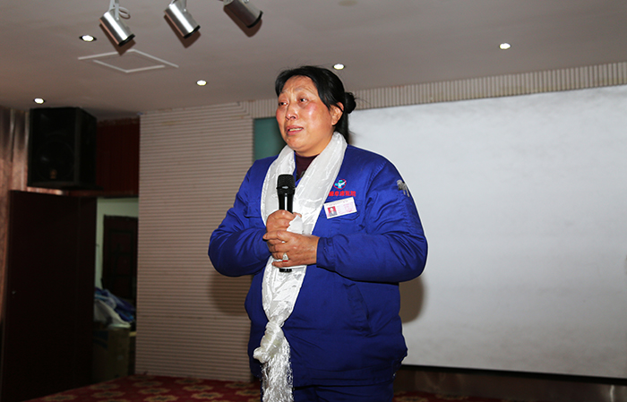 受助員工代表昂旺桑姆激動(dòng)地表達(dá)了對(duì)公司對(duì)王總的感謝,她表示,自己家里的狀況對(duì)很多親戚朋友來說可能是個(gè)拖累,很多親戚朋友都因此疏遠(yuǎn)自己。但在阜康,因?yàn)橥蹩偧捌浞蛉藙t瀟創(chuàng)辦的雪域天使基金會(huì)的幫助,讓自己的女兒能夠順利上大學(xué)。是阜康,是王總給自己家?guī)砹艘环菪碌南M?/span>